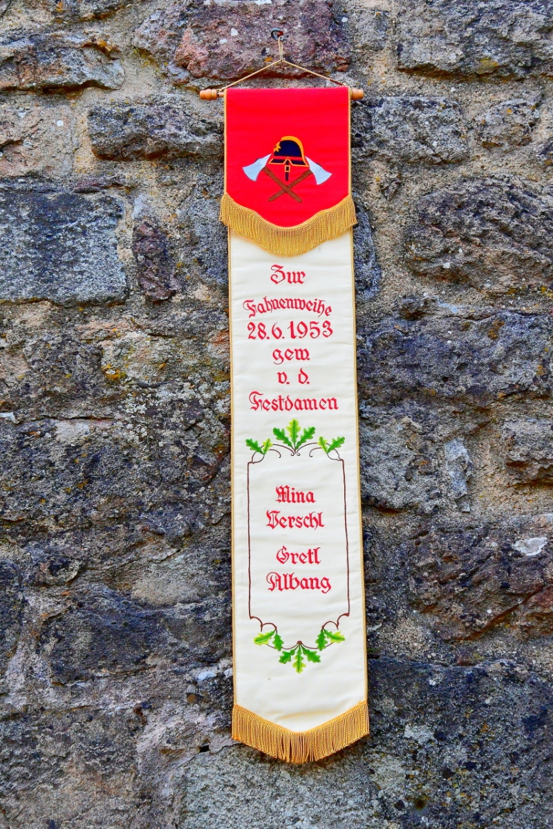Fahne Die Fahne wurde 1978 und 1997 renoviert. 5 Bild 6 von 10 Das Motto der Freiwilligen Feuerwehr Obermurach:In Fried und Sturmeszeit pfleg treu die Einigkeit