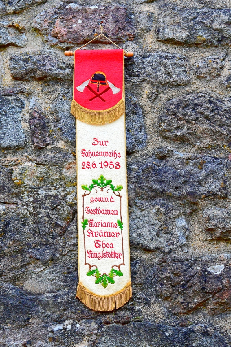 Fahne Die Fahne wurde 1978 und 1997 renoviert. 6 Bild 5 von 10 Das Motto der Freiwilligen Feuerwehr Obermurach:In Fried und Sturmeszeit pfleg treu die Einigkeit