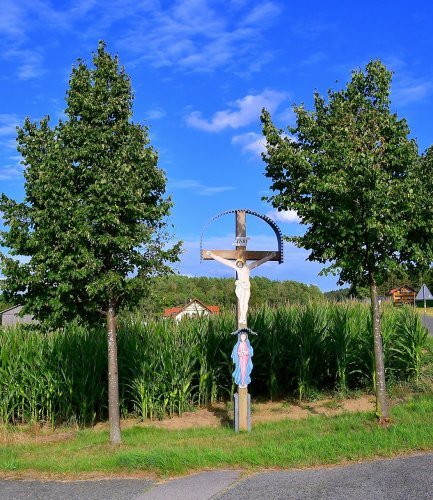 Gestiftet von Christoph Ringlstetter (Hausname Galli). Der Stifter war Teilnehmer des 1. Weltkrieges und gelobte die Errichtung, als er an der Westfront neun Tage verschüttet unter der Erde lag. Nach seinem Tod 1949 übernahm die Familie Albang die Pflege des Kreuzes. Die letzte Renovierung erfolgte im Jahr 2015.